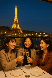隣には、恋人たちがホットワインを片手に微笑み合い、子どもたちは雪を掬いながら笑い声をあげている。